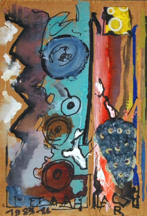 Gouache und Collagen auf braunem Wellkarton   28 x 74,7 cm